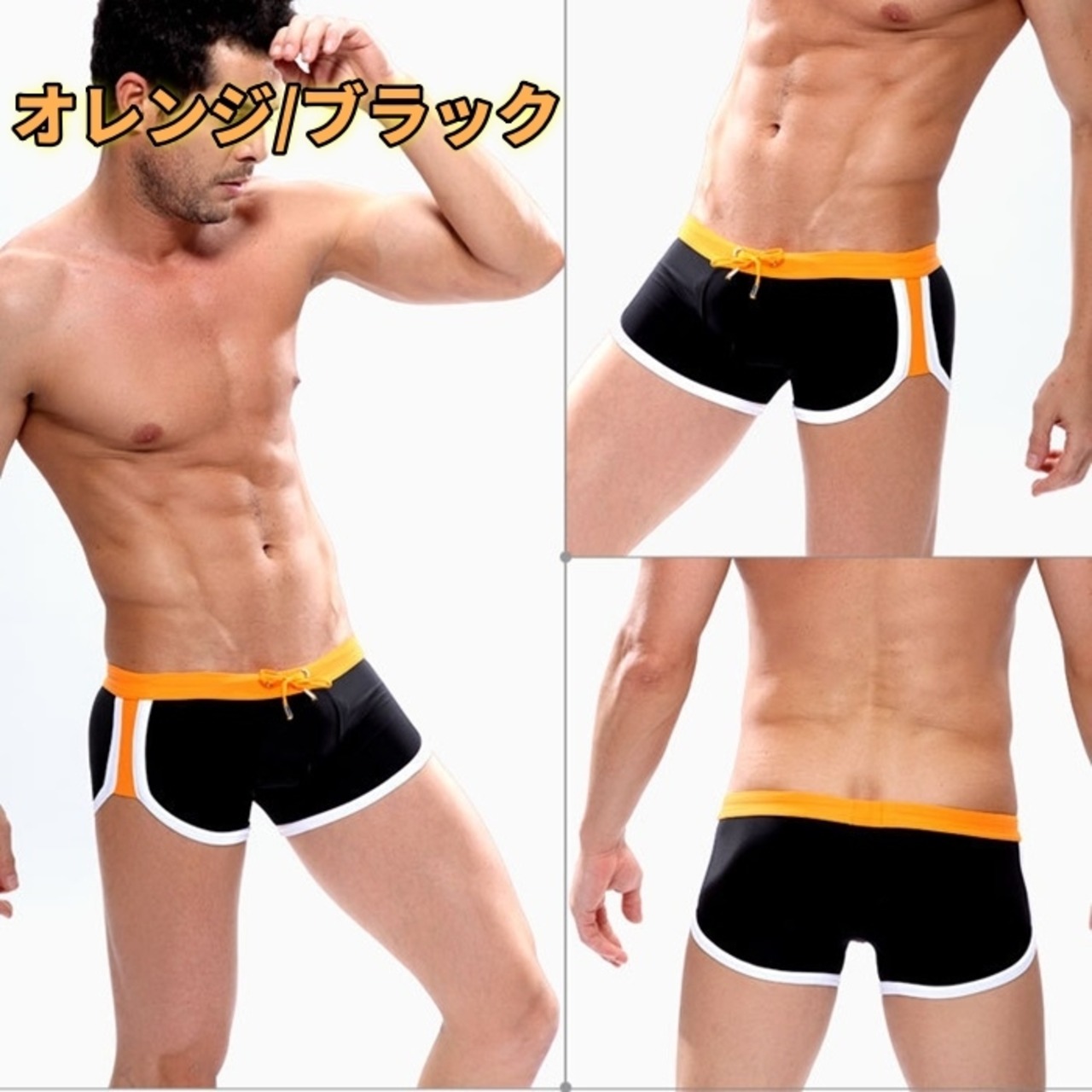 メンズ スイムパンツ|フィットネス・競泳・海水パンツ M〜LL 配色ウエスト・フィットタイプ・スイムウェア AP-0004