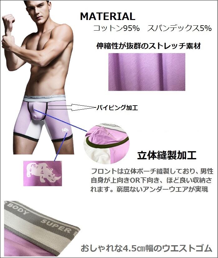 送料無料|メンズ ロングボクサー 登山向け 3Dポーチ もっこりパンツ マッチョ系 ストレッチ下着 E0060