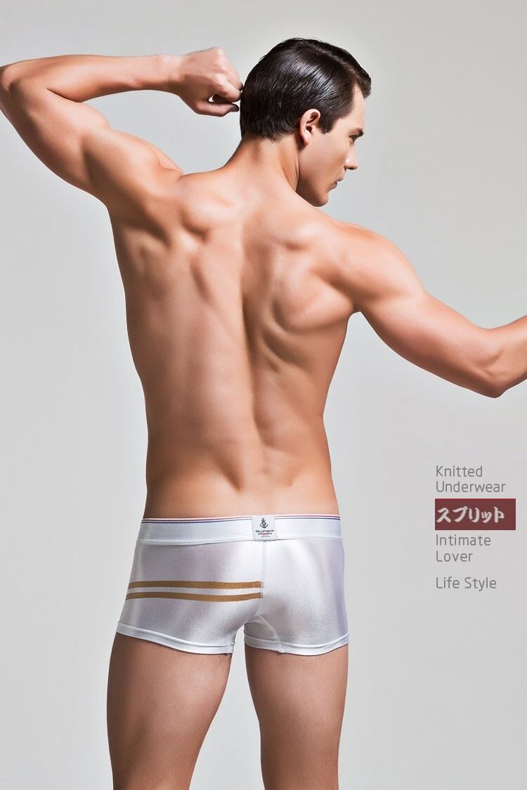 光沢感のある生地と、身体のラインを美しく見せるローライズ設計が特徴のメンズボクサーです。