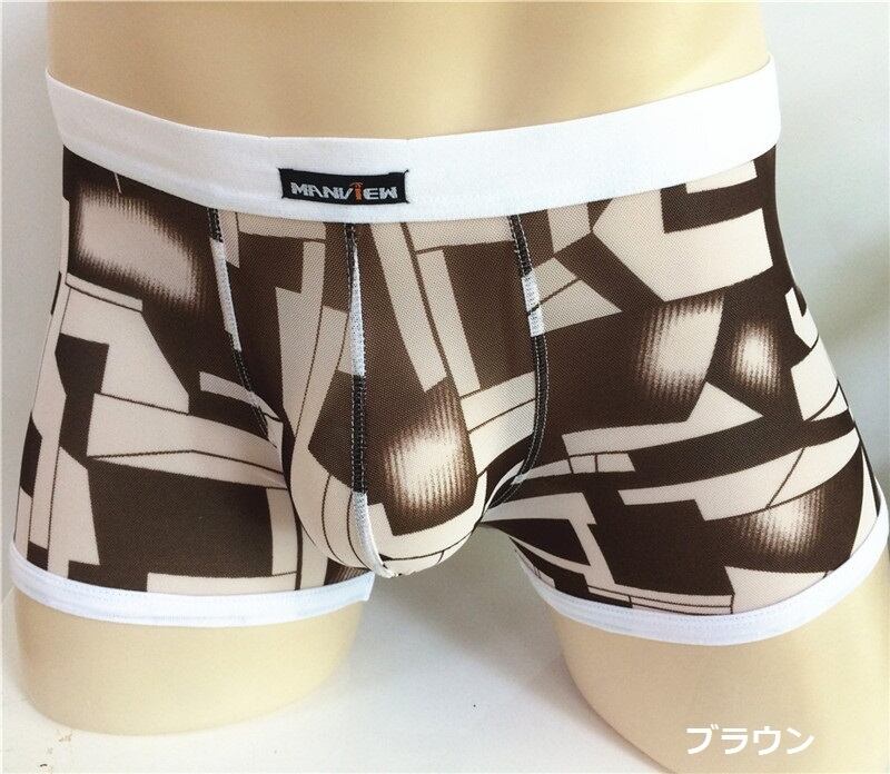 メンズ ボクサーパンツ / シースルー / 透け感 / 幾何学柄 / セクシー下着 / 薄手 / ローライズ / メンズ下着 / おしゃれパンツ / Mサイズ / LLサイズ / 男性用インナー