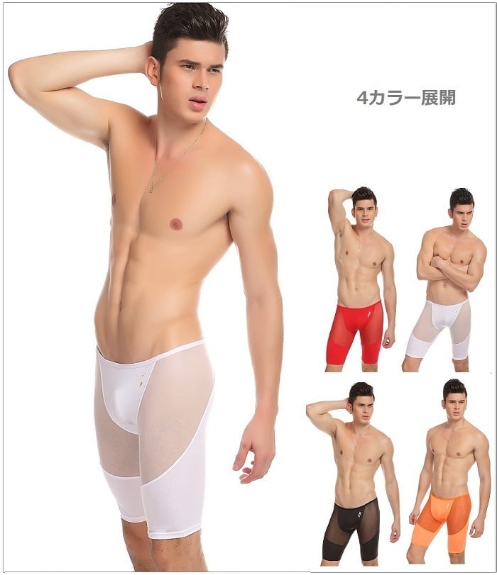 【送料無料】メンズ ロングボクサーパンツ|メッシュ素材・セクシー透け感・4カラー(M〜LL) C0095
