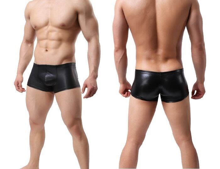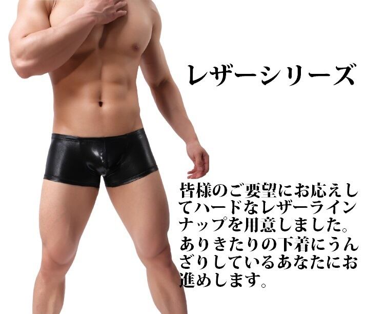 SM風 メンズ下着|光沢×ボディライン・セクシーボクサー レザー調×光沢・究極のセクシーパンツ H0007