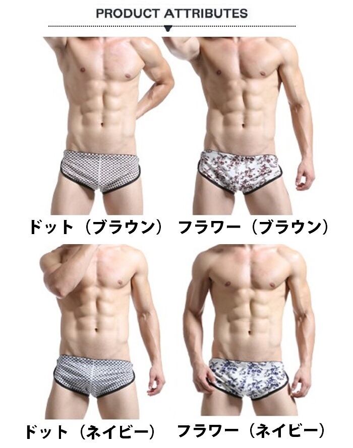 ドット柄とフラワー柄の4パターンから選べる、カップ付きメンズトランクス。