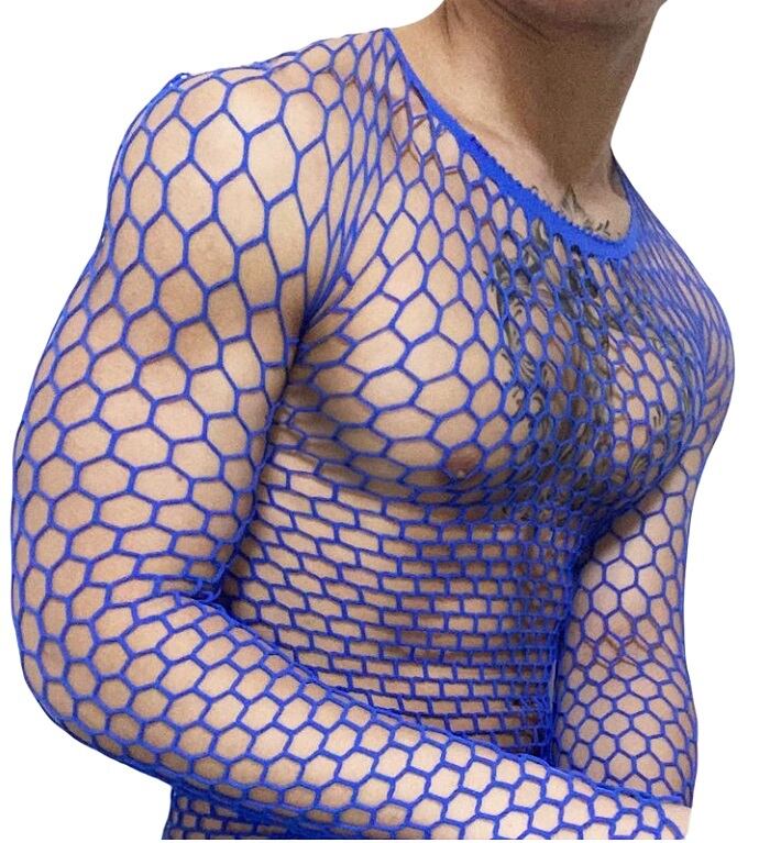 セクシーな透け感とフィット感を兼ね備えた、長袖タイプのメッシュインナーシャツ。