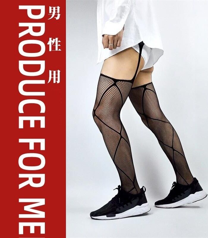 男性のためにデザインされた、スタイリッシュな網タイツソックス。
