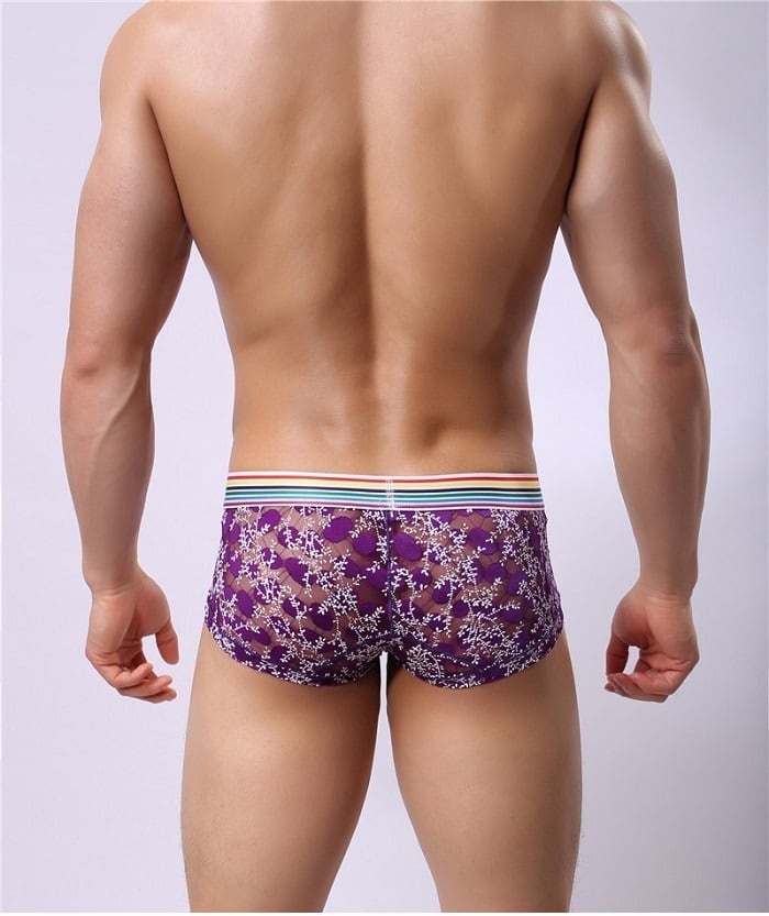 繊細なレース素材とスタイリッシュなデザインが魅力のメンズボクサーパンツ。