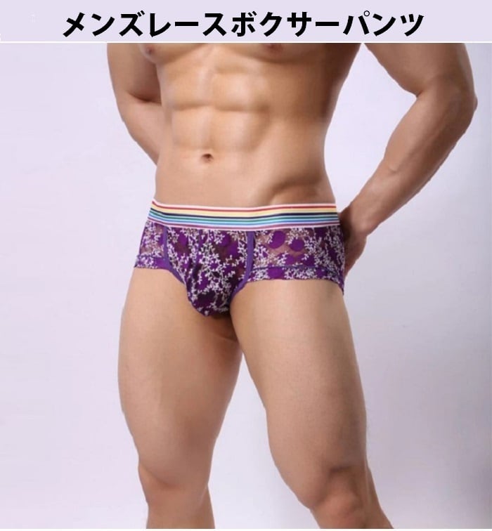 メンズレースボクサーパンツ / メンズ下着 セクシー / レース下着 男性用 / 透け感 ボクサーパンツ / メンズインナー おしゃれ / 男性用レースパンツ / メンズ下着 3L / セクシーインナー メンズ / メンズファッション 下着 / コスプレ メンズ下着
