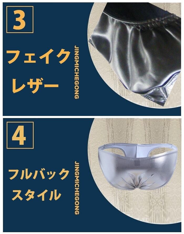フェイクレザー ビキニ / 光沢 メンズ 下着 / メンズ ブリーフ / セクシー ビキニ / スタイリッシュ メンズ インナー / ストレッチ 下着